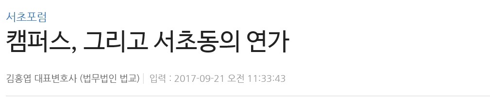 캠퍼스, 그리고 서초동의 연가 (2017. 9. 21.자 법률신문 서초포럼) 페이지 정보 작성자 법무법인 법교 작성일17-09-22 09:12 조회2,637회 댓글0건 관련링크 이전글 다음글 목록 본문 김홍엽 대표변호사님이 2017. 9. 21.자 법률신문 서초포럼에 기고하신 칼럼입니다.https://www.lawtimes.co.kr/Legal-Opinion/Legal-Opinion-View?serial=121243&kind= 이전글 다음글 목록
